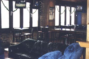 The main room is the place to be at Hi-Tops. This cavernous space is two-stories high, and has a curved ceiling that is held up by thick wooden beams sporting college banners. In addition, a pair of legs from a ski lift protrudes from the ceiling, just opposite the large Cubs Old Style raft. During the day, this room is filled with cocktail tables (accommodating up to 400 people) at which you can sit, have some grub, and take in multiple games simultaneously on one of the dozens of televisions and big screens that surround the room. This a great place to take in college football or basketball games, as you can watch several games at one time. In addition, University of Illinois fans and University of Wisconsin fans will appreciate that both Chicago alumni chapters gather weekly at Hi-Tops to support the Illini and Badgers. For those who did not go to either school, I recommend heading to Hi-Tops when both teams play each other to see if blood is spilled.