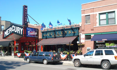 Cullens’ authentic feel is a welcome departure from many of the cheesy, shamrock-peppered, McDonald’s-like and Disney-fied Irish pubs elsewhere in the city and suburbs. Instead, Cullen’s has it’s own character, evidenced in part by the old stage posters in the back room, the classic Chicago tin ceiling, and the impressive mahogany bar. The ceiling was safely resurrected from an abandoned West Side factory and the bar itself was crafted by a local carpenter in the Brunswick style. Cullen’s also has a bar in the back room, but it does not serve any draft beer. The only problem with Cullen’s is that everyone knows what a stellar pub it is, and the place gets packed and rowdy. Cullen’s recently expanded into part of the Mercury Theater next door, but it still gets incredibly crowded (particularly on Sunday nights when it’s Irish Au-Pair-Fest). It’s still worth it.
