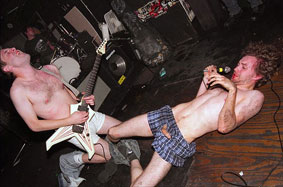 Because the Mutiny runs without a cabaret license (never applied for, actually), the place cannot legally charge a cover for bands, though it’s clear they probably would never want to. After an experiment in the early 90s, bands started to appear more and more regularly within the darkened back-room of Mutiny. Slowly but surely, this generated a head of steam and it was in 1998 that the roof almost literally blew off. A Mutiny regular, Seth Skudrick, from a band called The Nerves came in with an idea: three bands, Halloween night – how ’bout it? Sure. A series of colorful and professionally done concert bills were posted all over the city, one of which still hangs beside the bar and next to the front windows overlooking Western. A crowd, the likes of which had never been assembled in Mutiny, came for what turned out to be one of the best shows ever put on there, or anywhere. The Gaza Strippers headlined, along with The Nerves and Grand Theft Auto. People still talk about that show today and, since then, a legion of young, up-and-coming bands from Chicagoland and all over the country have played here.